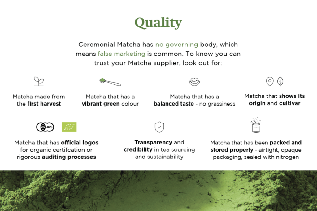 If a Matcha brand is serious about quality, they’ll be happy to prove it. Look for: